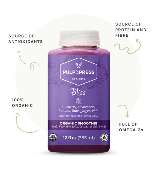 Bliss contains blueberry and strawberries that are loaded with antioxidant goodness. Plus chia for an excellent source of omega-3 fatty acids and antioxidants.